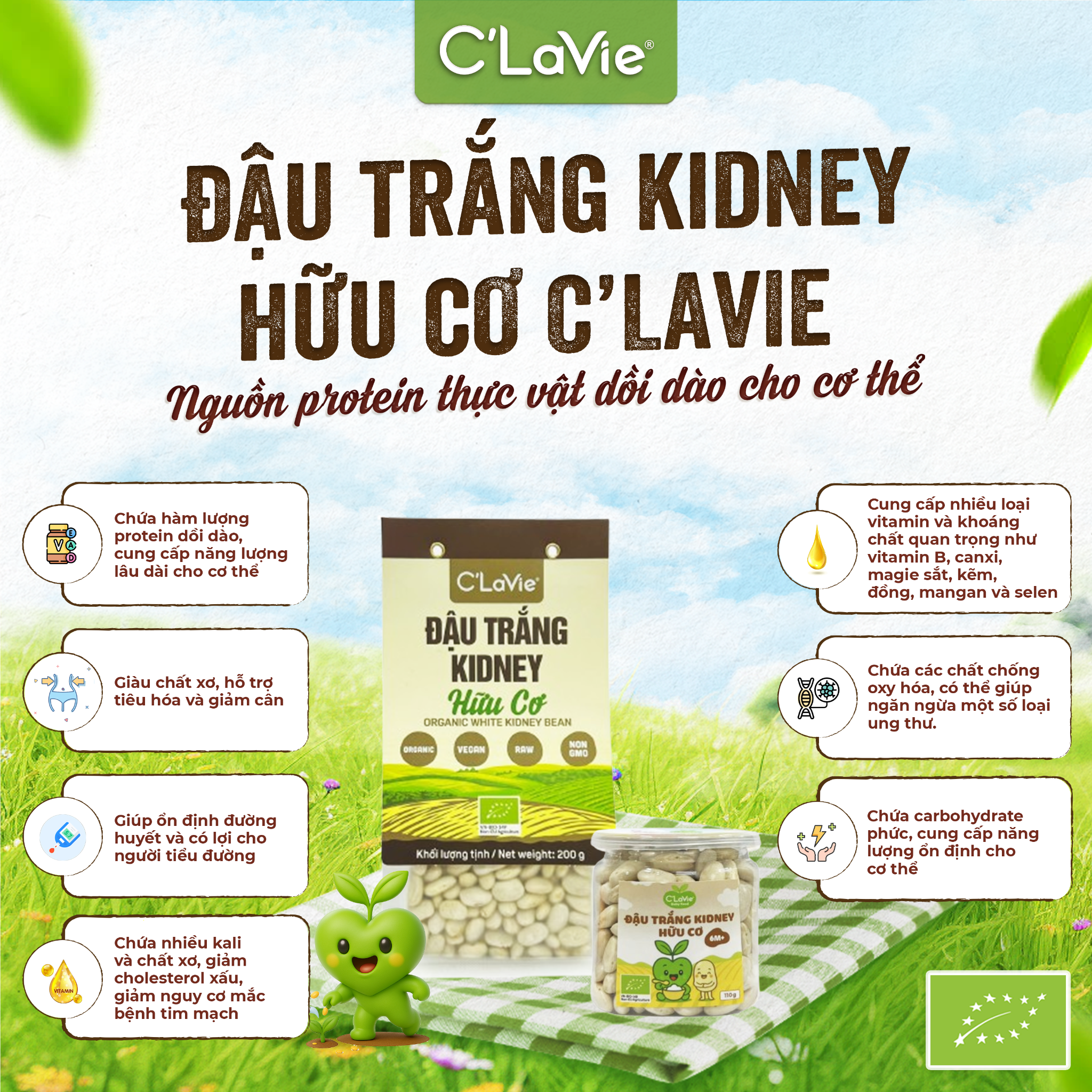 Đậu trắng kidney hữu cơ C’LaVie – Nguồn protein thực vật dồi dào cho cơ thể